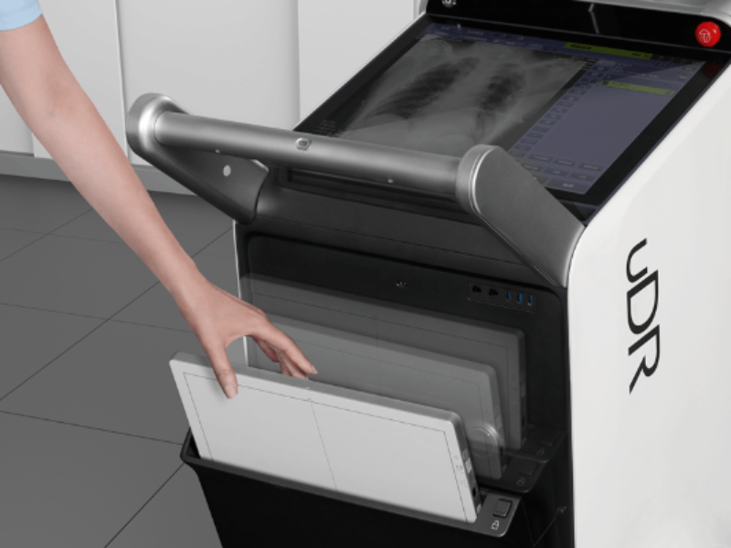 The uDR 380i Pro is a high-performing and agile mobile X-ray system with an ultra-narrow body design, a high voltage generator, and the uVision Remote Console that redefines the workflow for point of care imaging.