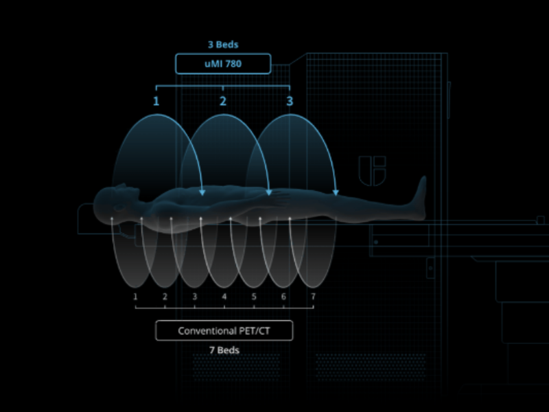 The Long axial 30 cm FOV and high system sensitivity enables whole-body scanning in 3 bed position within 5 minutes.