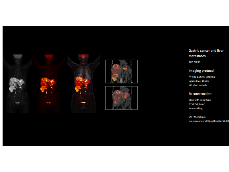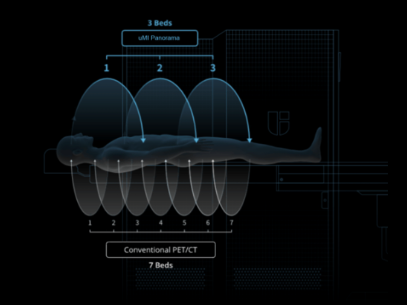 The uMI Panorama is born with AI, intelligently senses the patient on the table for accurate positioning, simplifies the workflow by automatically setting scan parameters and produces ultra high-resolution images using the advanced AI iterative reconstruction engine trained with uEXPLORER® PET total-body data.