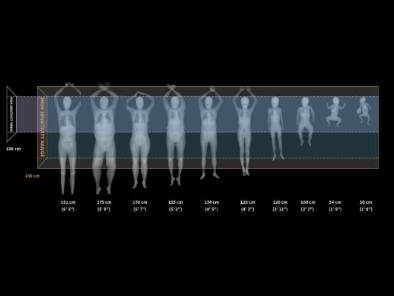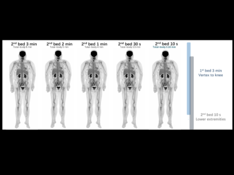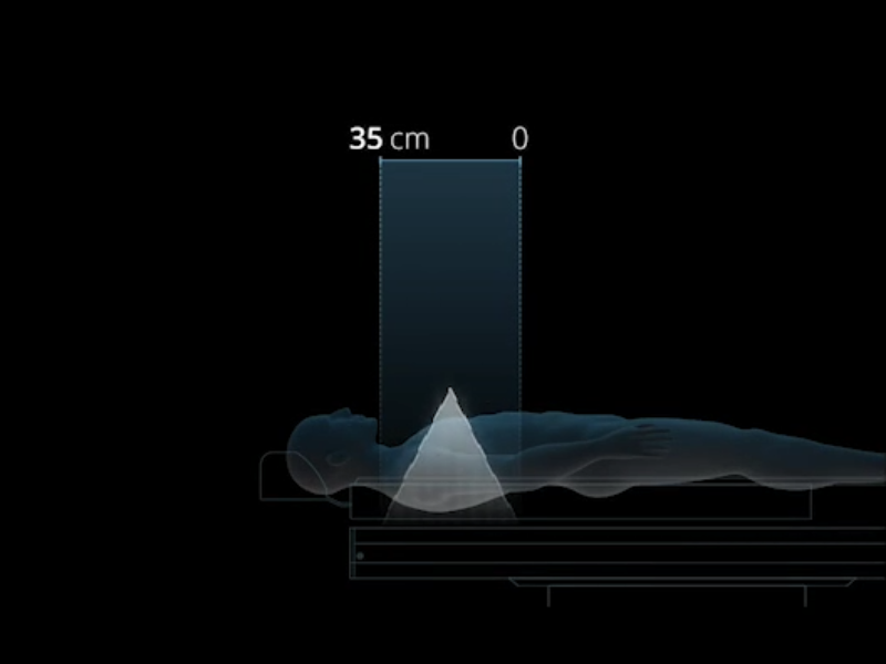 According to data on human height*, the median male height is 178.4 cm, and the median female height is 164.7 cm. The uMI Panorama GS offers a long axial field of view measuring 148 cm, enabling a single-bed scan to have the vertex to mid-thigh region fall within the high sensitivity range of the system for almost all individuals, enabling high-resolution whole-body PET/CT.